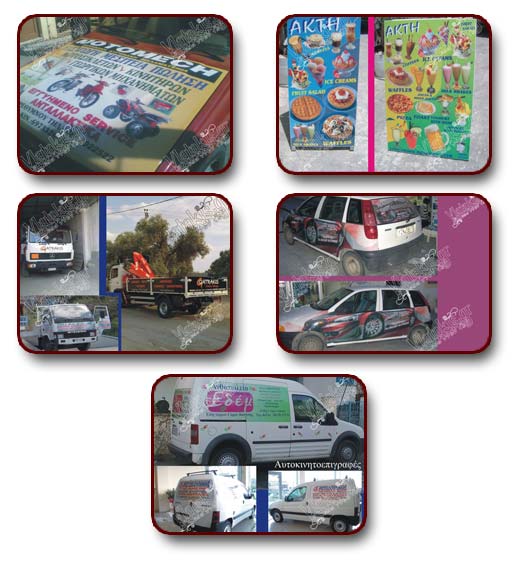 Το plotter μας έχει επίσης την δυνατότητα περιμετρικής κοπής του θέματος δημιουργώντας έτσι εντυπωσιακά γραφικά βιτρίνας, pop signs, αυτοκόλλητα τυπωμένα γράμματα, αυτοκόλλητα αυτοκινήτων κτλ. με solvent μελάνια που παρέχουν εκτυπώσεις με μεγάλη διάρκεια αντοχής σε εξωτερικές συνθήκες.